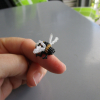 The bee measures 20 mm x 10mm, which is approximately the same size as those visiting the flowers on my balcony. Like the real bee, it has two pairs of wings, one smaller than the other. The longer wings measure 12mm x 5mm.