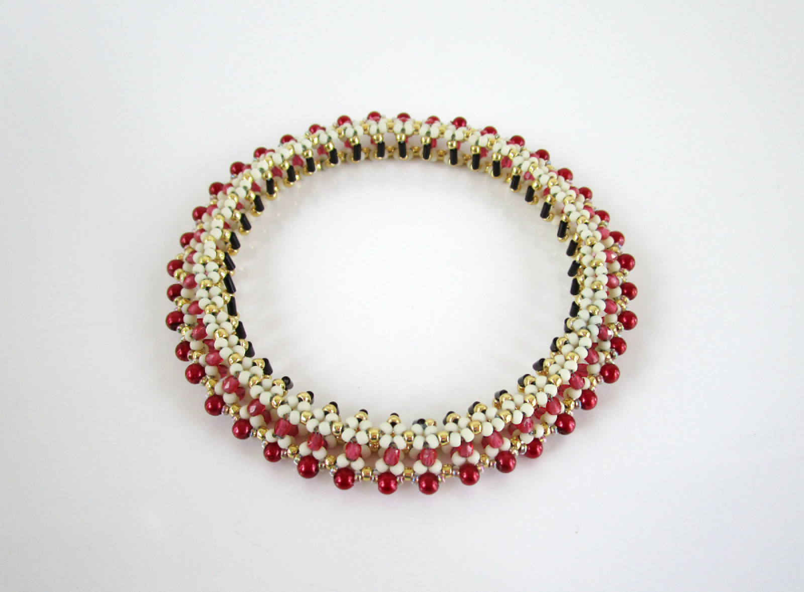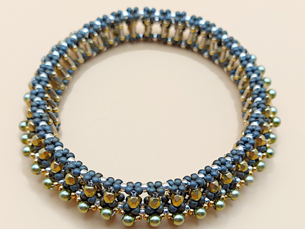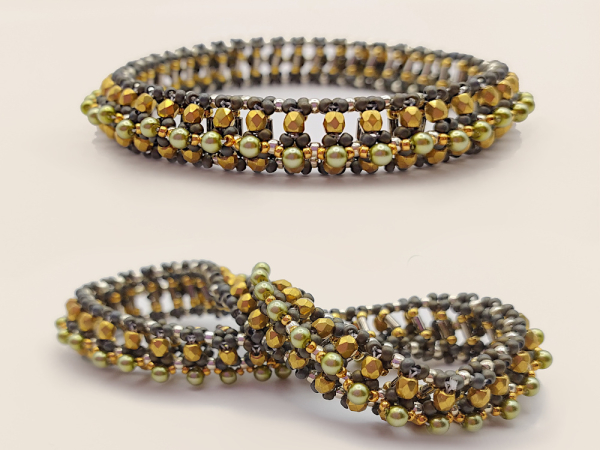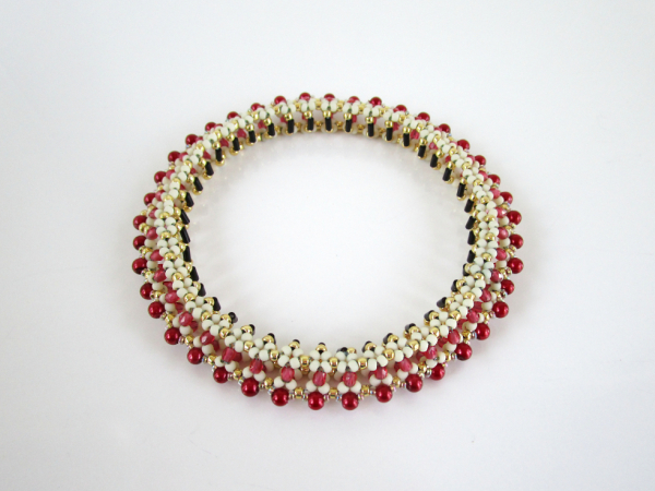 This tutorial will teach you how to make the Colimabangle. Tubular Variation 8 of Diamond Weave was used to create it.