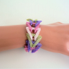 The bracelet is very comfortable, reversible and modular. The one in the photo measures 17,25 (18cm) without clasp - you can adjust the size of the bracelet very easily by making less or more elements, and by adding ribbon, or different type of clasp.