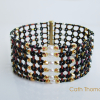 Materials: Japanese bugle beads size #1, 4mm firepolished beads, 3mm & 4mm glass pearls, size 11/0 Delica beads, a slide tube clasp with 5 twisted loops, plus the usual (clasp, thread, needles, scissors).