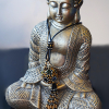 Material: seed beads of various brands and sizes, 8mm chatons, thread, leather cord, a jump ring, pliers, scissors, etc.